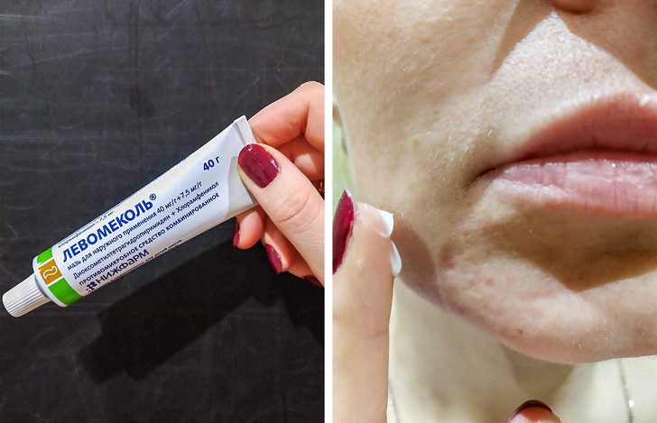 Эта мазь создана на основе антибиотика широкого спектра действия — хлорамфеникола и метилурацила. Первый справляется с большинством бактерий, второй стимулирует процессы обмена веществ в клетках, способствует заживлению и регенерации тканей. «Левомеколь» хорошо заживляет как мелкие, так и крупные гнойные прыщики и устраняет угревую сыпь. По отзывам, мазь уменьшает воспаление, очищает поры от загрязнений, убирает отеки, шрамы и пятна после прыщей.