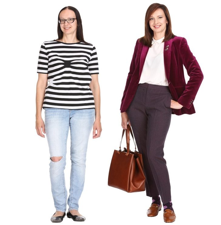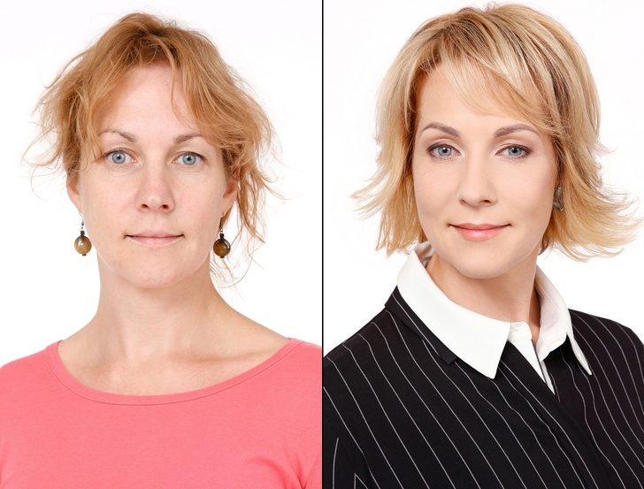 Все девушки слева-тщательно умытые, в джинсиках; справа-тщательно накрашенные.Да здравствует косметика( конечно + причёска+прикид)!