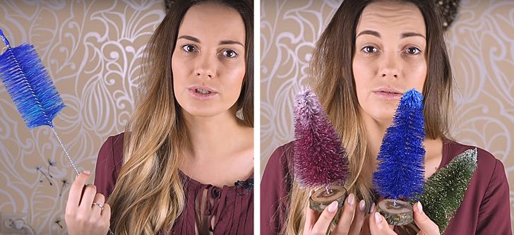 Всего за 5 минут из ершика для бутылок может получиться декоративная елочка.