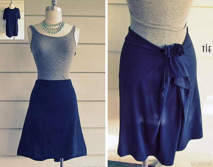 Из старой футболки может получиться отличная юбка с кокетливым бантом сзади.