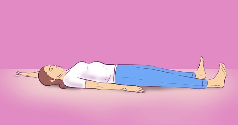 На выдохе расслабься и ляг ровно. Повтори потягивания 5 раз на каждую сторону.
