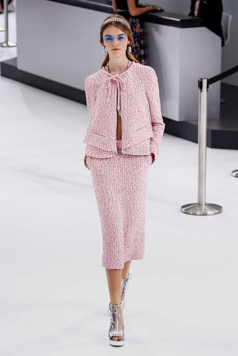 Шанель начала шить из твида и джерси, тканей, которые до нее использовались исключительно для пошива мужских костюмов. Она уничтожила стереотипы и создала оригинальный женский костюм. Он пришелся по вкусу голливудским актрисам и даже жене американского президента — Жаклин Кеннеди.