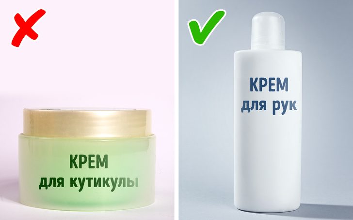 Чаще всего состав крема для кутикулы мало чем отличается от состава обычного крема — это просто еще один способ заставить людей покупать больше. Чтобы не переплачивать за красивую баночку, для ухода за кутикулой используйте масла или обычные питательные кремы.