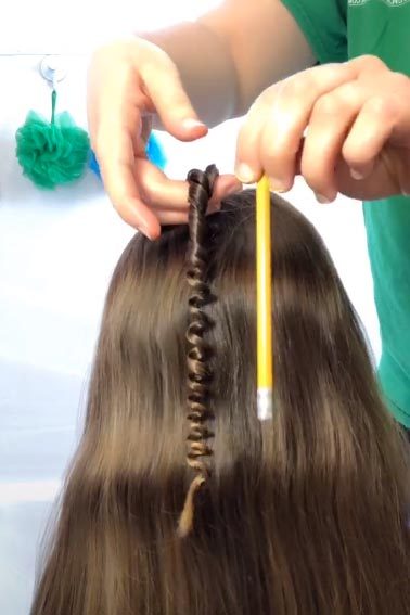 Волосы должны быть чистые. Отделяем одну прядь, наматываем её на карандаш.