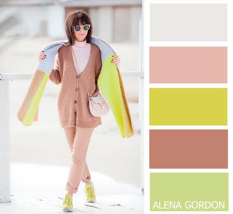 Предлагаем посмотреть на примеры более 30 весенних палитр, в которых гармонично подобраны оттенки в одежде и аксессуарах: