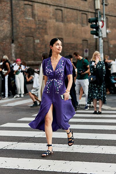 Находясь между макси и мини-платьем, миди – это именно то, что нужно всем, если вы не уверены в формальности мероприятия. Этот стиль может иметь любой вырез или длину рукава, поэтому он отлично подходит для любой фигуры. Наденьте колготки и ботильоны для идеального зимнего образа, или подберите балетки и симпатичную соломенную шляпку и устройте стильный пикник!