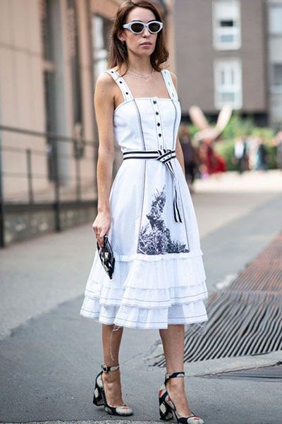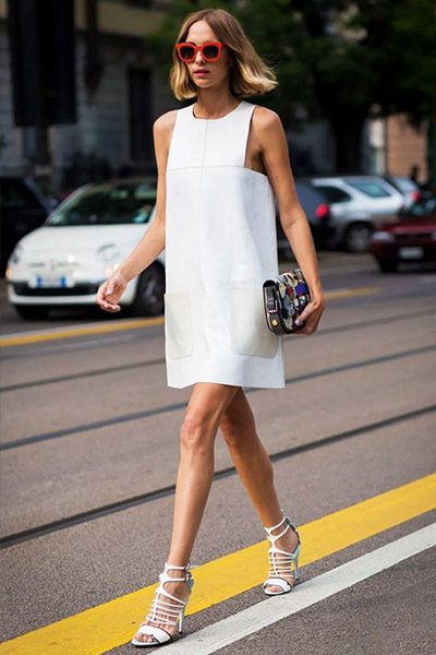 Идеальное повседневное платье – платье-футболка –это то, что вы можете надеть, когда идете в кино. Во многом оно как обычная футболка, у него круглый вырез и свободный силуэт длиной чуть выше колена. Этот образ идеально подходит для любого типа телосложения, поэтому будьте креативны, так как это платье –самый настоящий чистый холст и будет уместно в любой сезон!