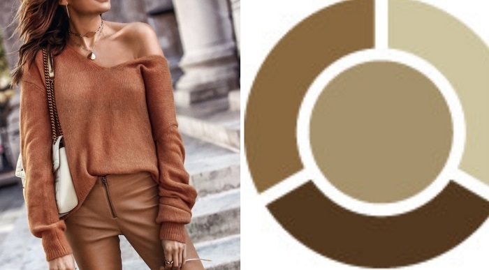 Сочетается такой цвет с очень многими цветами, потому как он относится к тому оттенку коричневого, который считается универсальным цветом для сочетаний.