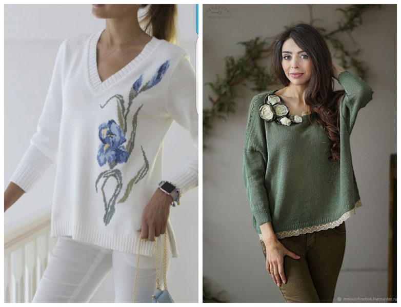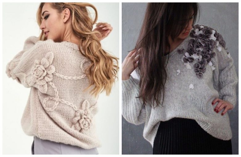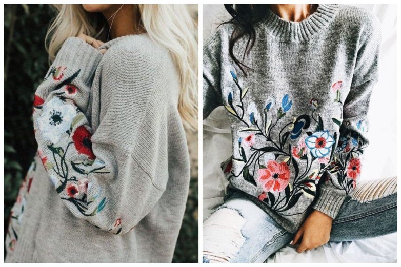 Что может быть лучшим украшением, чем цветы? Традиционно кофты ассоциируются с зимой, теплом и уютом. Но в это настроение можно привнести нотки свежести и радости с помощью флористических мотивов. Приветствуется всё – от вышивки до аппликаций и декора. Ограничений по типу и размеру цветов тоже нет – это могут быть, как мелкие нежные цветы, так и крупные ветви деревьев с распустившимися цветами.
