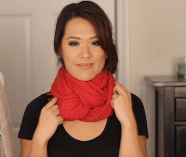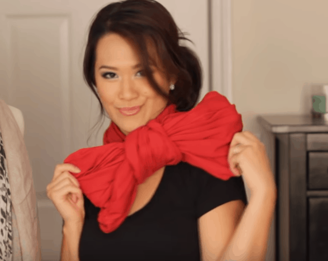Шарфов много не бывает! Сочетать их можно не только с верхней одеждой, но также с платьями или костюмами. Для того чтобы красиво повязать шарф, достаточно нескольких минут. Научиться делать это быстро и красиво поможет видеоролик: