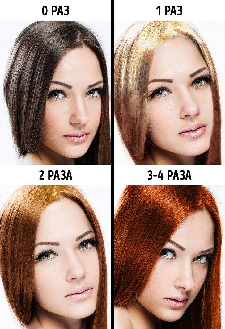 Очень часто нам обещают цвет волос мечты за 1–2 процедуры, но знайте, что в парикмахерском искусстве цвет — это настоящая наука. Идеальный тон зачастую может получиться только после 3–4 сеансов окрашивания. Закон жизни: натуральная брюнетка или шатенка никогда не будут иметь такой же светлый тон волос, как натуральная блондинка. Но можно набраться терпения и прийти к нужному тону поэтапно. Дайте мастеру время.