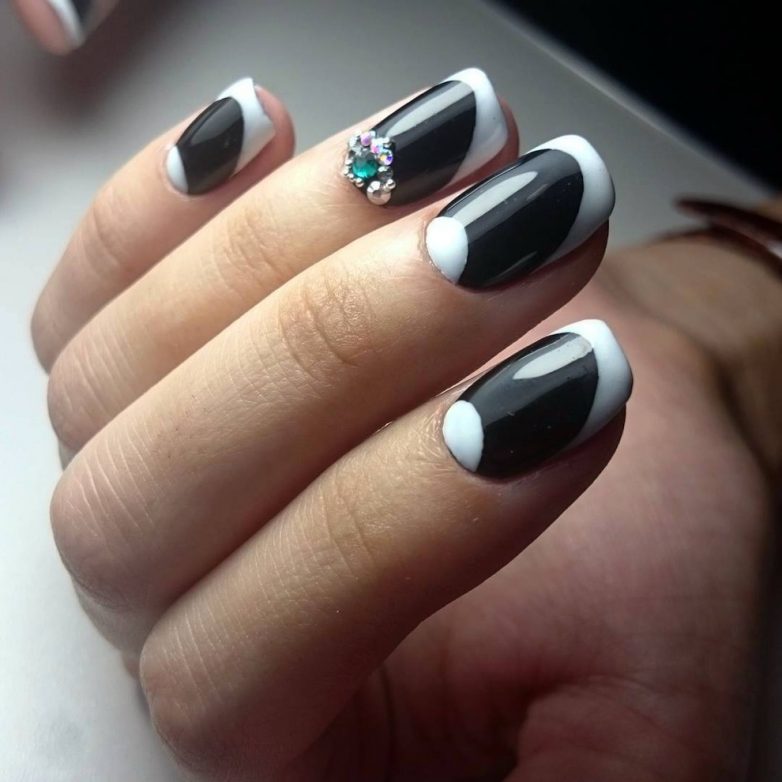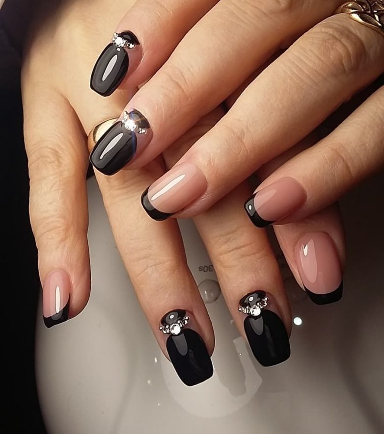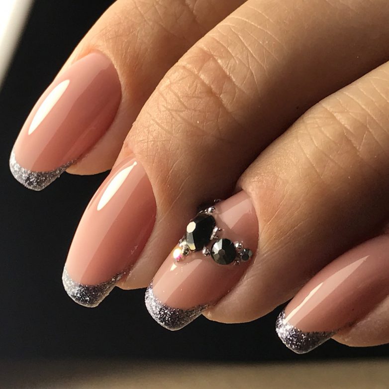 Черный, как всегда, выглядит мегастильным. На первый взгляд такой дизайн может показаться излишне лаконичным и строгим. Однако этот эффект можно легко смягчить с помощью мягкой постельной основы и добавления мерцающих камушков на некоторые ноготки. Френч в серном исполнении выглядит благородно и изыскано.