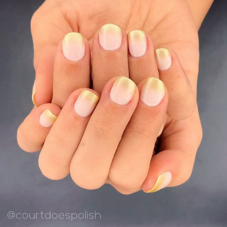 Можно было не сомневаться, что дизайнеры попытаются соединить два столь популярных направления ногтевого дизайна – френч и омбре. Причем омбре можно применить, как к самой «улыбке» френча, так и к основе. Прелесть этого решения – неограниченное количество цветовых вариаций. Ограничением может быть лишь ваша фантазия.