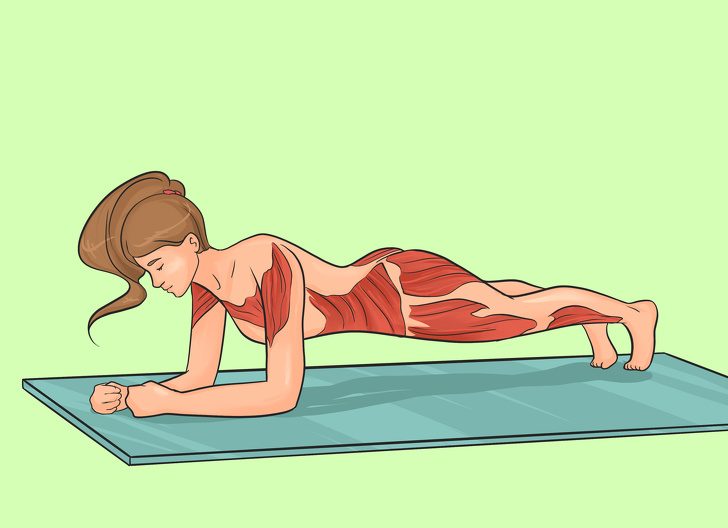 Планка на локтях — основное упражнение для тела, обеспечивающее плоский живот.