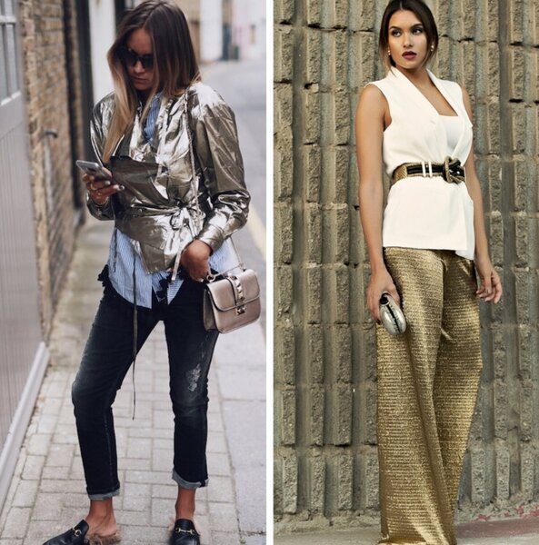 Светоотражающая одежда, такая как блестящий атлас, кусочки металлического серебра и блестки, делает все, что они покрывают, больше. Поэтому, когда вы достанете эти атласные брюки или золотую куртку, знайте, каким будет общий эффект. Чтобы заставить его работать на вас, используйте отражающие элементы, чтобы вернуть пропорции в вашу форму. Например, выбирайте брюки из металлического золота в сочетании с более приглушенным топом.