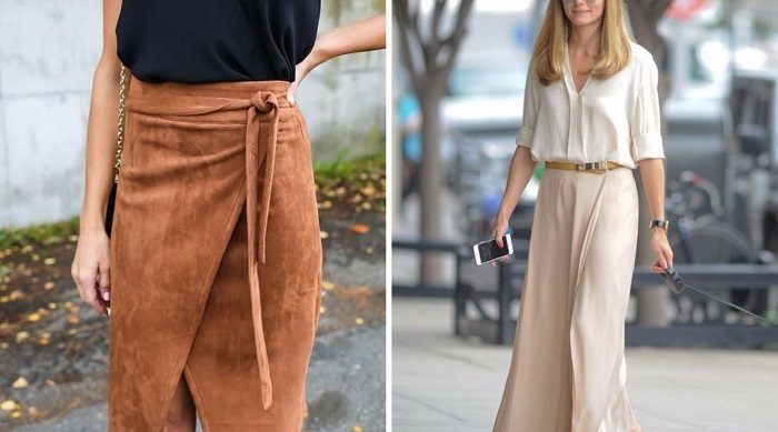 Юбка с запахом, в зависимости от ее длины может приоткрыть красивые колени, лодыжки или изящные икры.