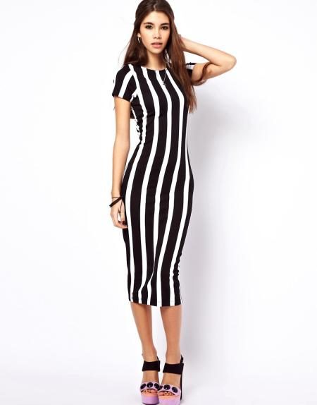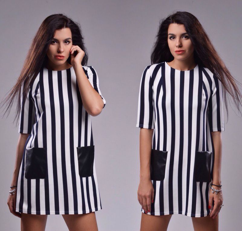 Одежда с вертикальными полосами. Не секрет, что вертикальные линии вытягивают силуэт, но это не значит, что ваши наряды должны быть сплошь полосатыми. Полоски на одежде, как правило, сильно выделяются, поэтому придать стройность и не превратиться в матрас помогут вещи с рисунком из мелких вертикальных линий в темных тонах в сочетании с однотонными вещами.