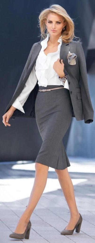 Почему бы не соединить классическую прямую юбку и однотонную кофту?