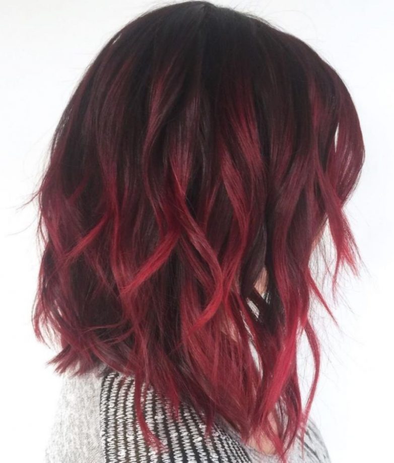 Балаяж позволяет удачно оттенить волосы и создать совершенно новый образ, который будет по-настоящему стильным и умопомрачительным! Одна удачная идея для брюнеток — бордовый балаяж — стала настоящим хитом. Это мягкие, но в то же время насыщенные переливы сочного бургунди.