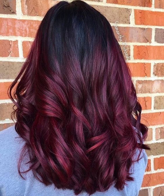 Тёмные волосы с вишнёвыми бликами насыщенного бургундского вина