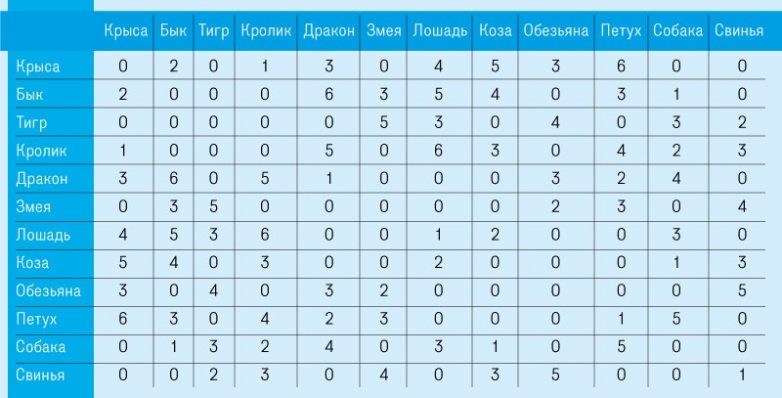 Таблица совместимости знаков по годам