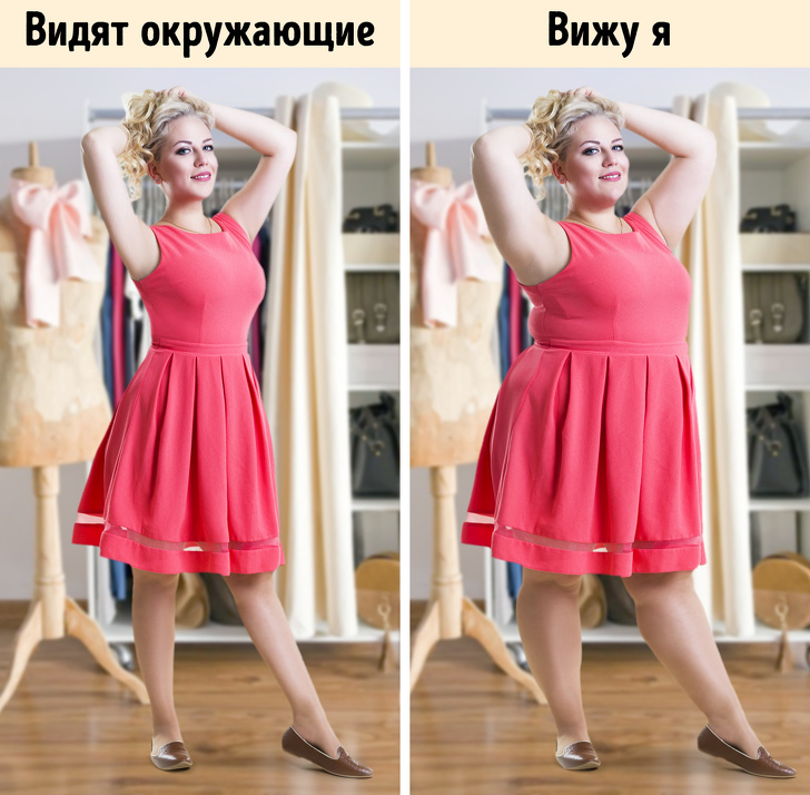 Нередко человек, который привел свое тело если не в идеальную, то хотя бы в близкую к эталону форму, не видит в зеркале того, что видят окружающие, а продолжают «лицезреть» прежнего толстяка. Это приводит к тому, что человек, ограничивающий себя в поедании любимых «комфортных» продуктов, теряет смысл подобных «издевательств» над собой и возвращается к былому рациону. Именно поэтому работа с психологом для худеющих людей столь же важна, как и взаимодействие с диетологом.