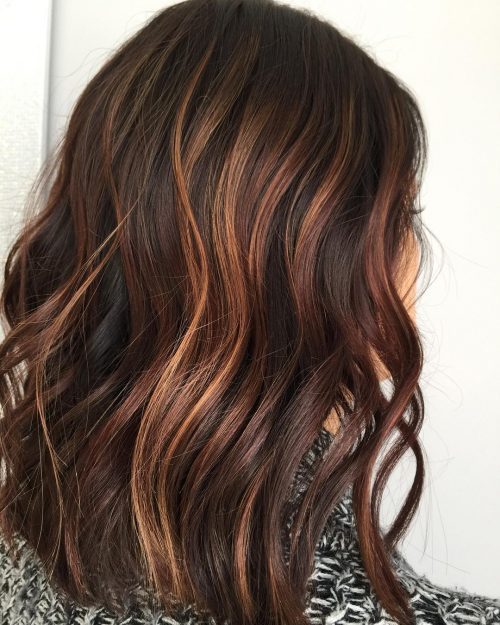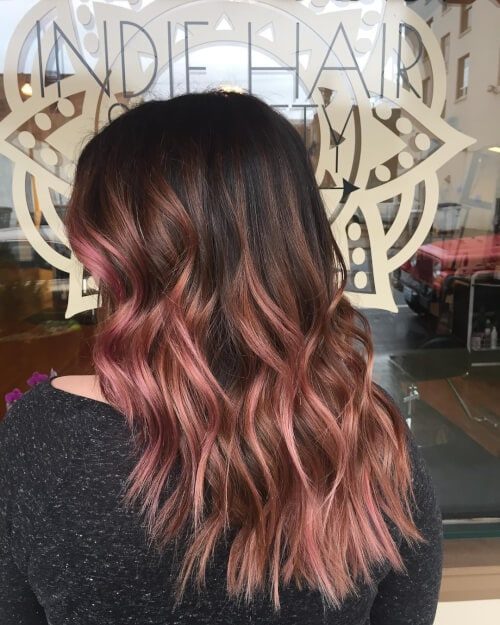 Розовое золото на каштановых волосах. Техника балаяж с мягким переходом оттенков