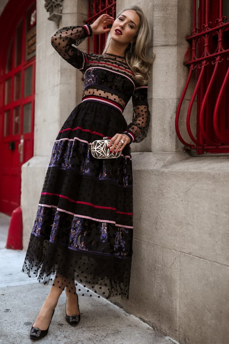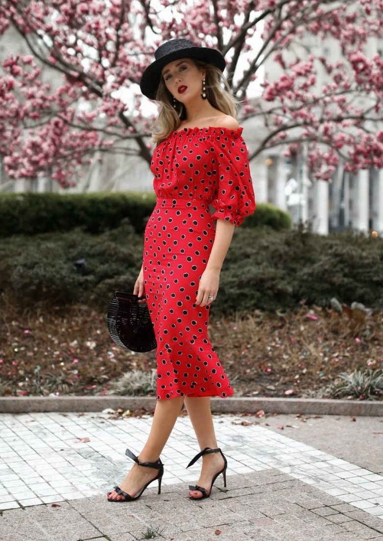Если платье однотонное, да при этом черного цвета (так называемое маленькое черное платье), то вполне можно и даже нужно надеть под него туфли яркого цвета. Например, красные. Такой образ будет очень эффектным!