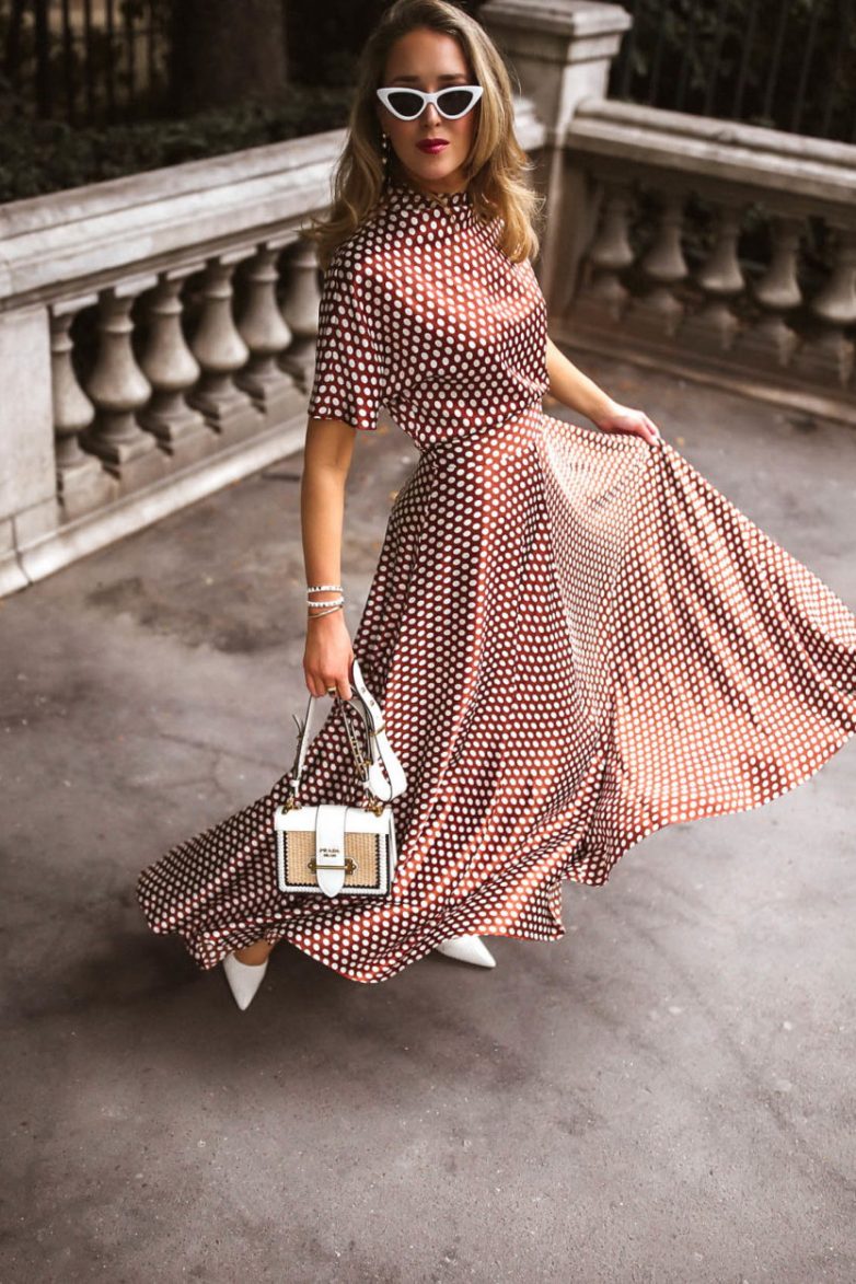 Следите за сочетанием цветов, фактур, тканей и рисунков, когда будете подбирать туфли под платье.