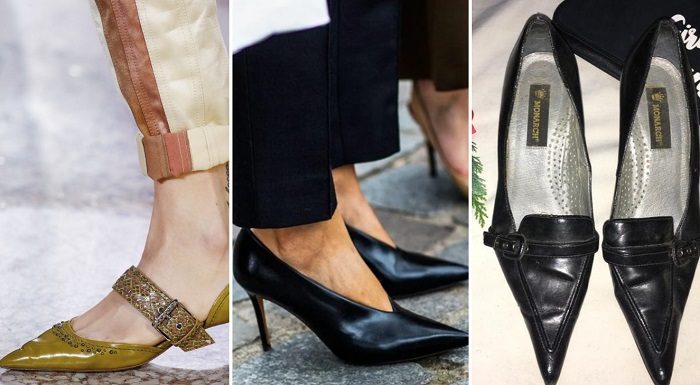 Снова в моду вернулись туфли с длинным острым носком. Такую обувь еще называют knife shoes, поскольку длинный и узкий мысок очень похож на кинжал. Дерзко, опасно, хищно, дико — называй, как хочешь, но это незамеченным не останется.