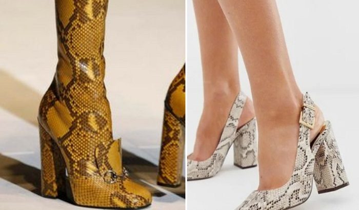 Осень-2019 не обойдется без туфлей с принтом на природную тематику. Любые рисунки, скопированные со шкур животных, смотрятся стильно и смело. Отдавай предпочтение змеиным, леопардовым принтам.