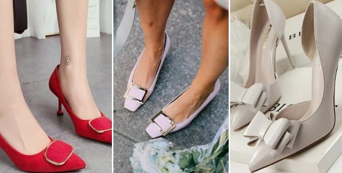 Обычные классические лодочки также могут выглядеть оригинально, если они украшены декоративными элементами в виде бантов и ремней.