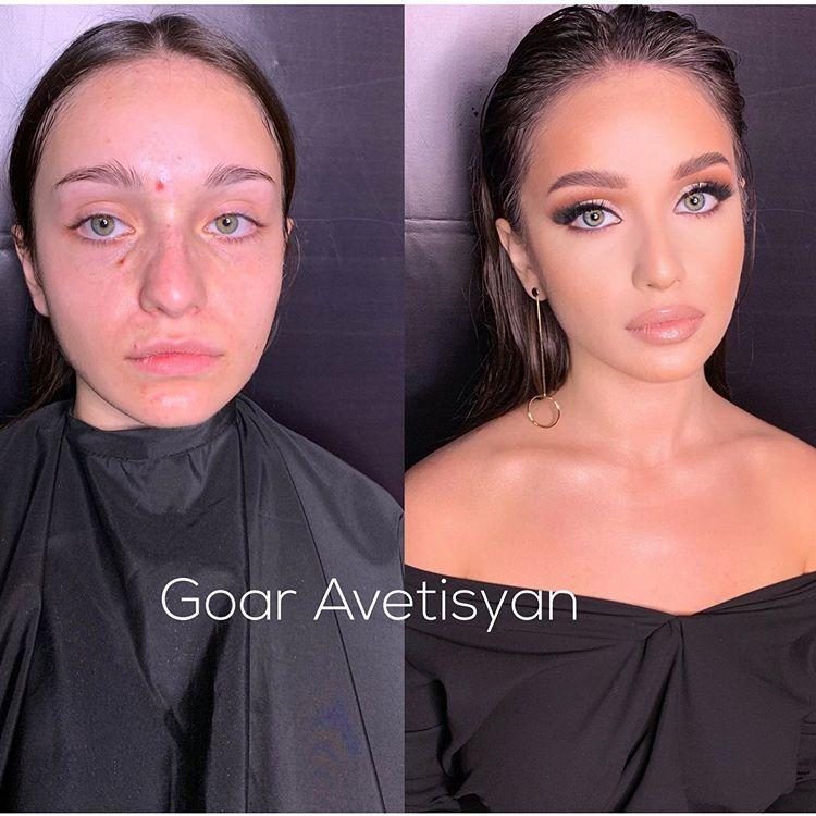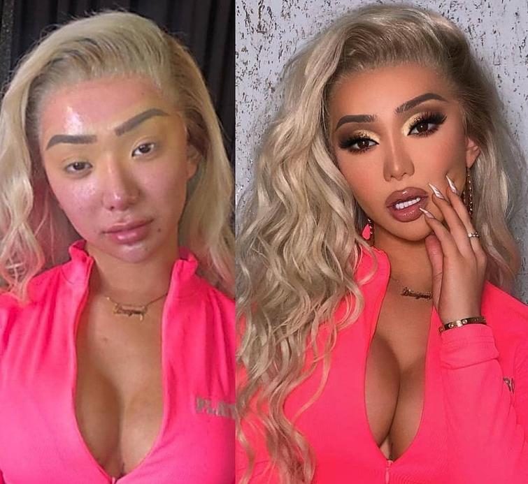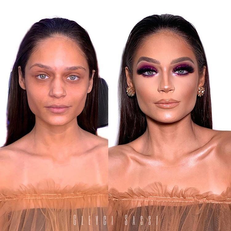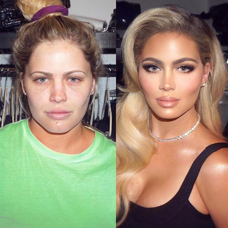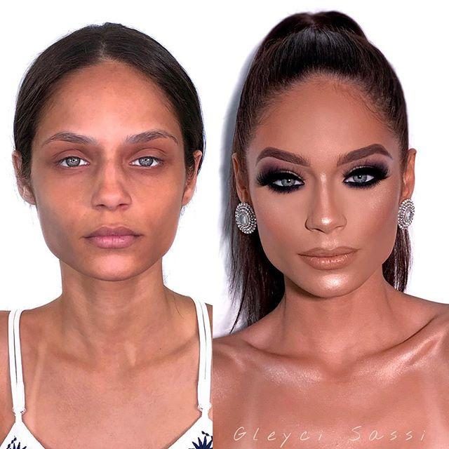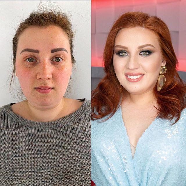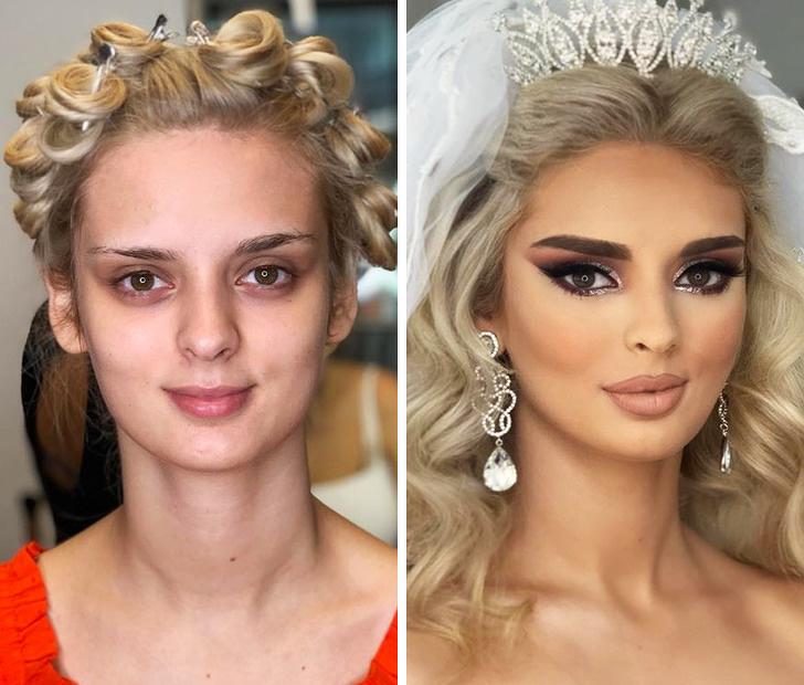 Женщины до и после нанесения макияжа