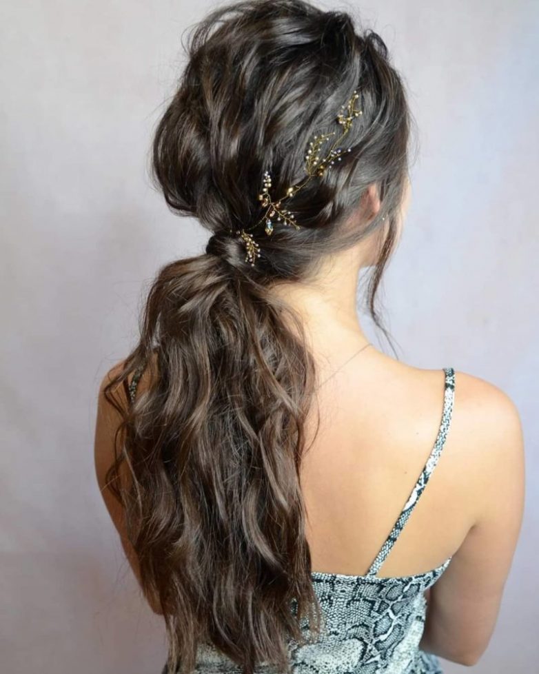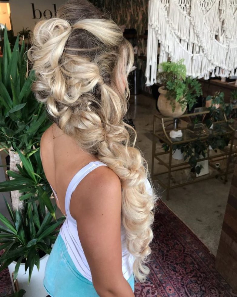 Небрежно собранная коса на взлохмаченных волнистых волосах