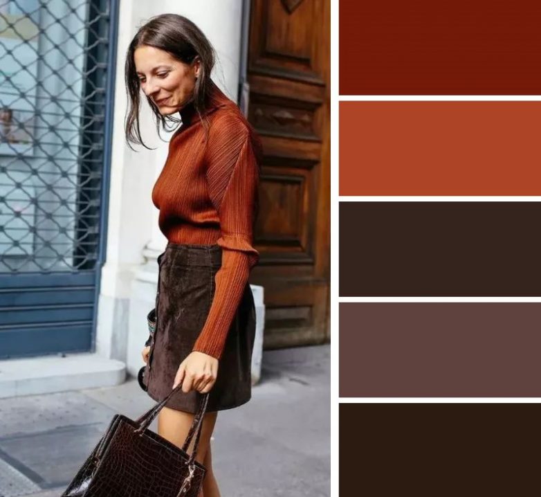 Подходящие комбинации: коричневый, апельсиновый.