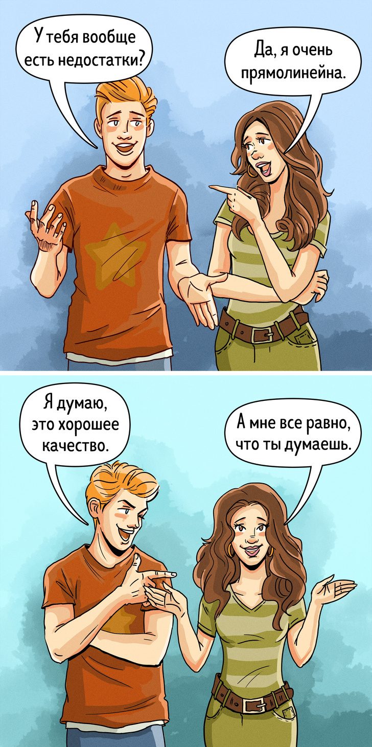 И мужчины, и женщины находят рискованное и авантюрное поведение невероятно привлекательным. Вы всегда готовы сорваться в спонтанное путешествие, прыгнуть с парашютом или нырнуть с аквалангом в морские глубины? Будьте уверены, что ваше окружение примет эту особенность поведения с большим энтузиазмом. Искатели приключений зачастую привлекают своей эксцентричностью и любовью к жизни. Кроме того, на подсознательном уровне человек понимает, что с таким другом или партнером точно не соскучишься!5. Чрезмерная прямота