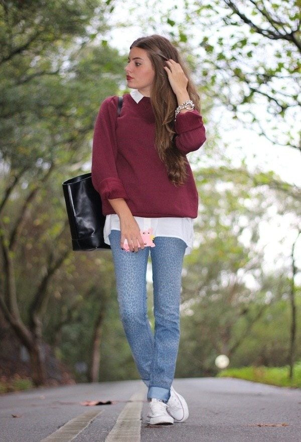 Один из самых модных вариантов – образ со свитером оверсайз и обтягивающими джинсами или леггинсами. Такие джинсы выгоднее всего подчеркнут необычную форму свитера и сделают силуэт гармоничным.