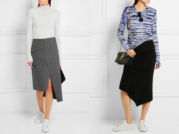 Такой фасон юбки подойдет для девушек которые любят строгость в одежде, но при этом не прочь добавить в свой look немного чувственности. Юбка с разрезом на боку, сзади или спереди — musthave осеннего сезона. Чтобы поиграть на контрасте выберите юбку-карандаш с длиной миди, и не забудьте о пикантном разрезе.