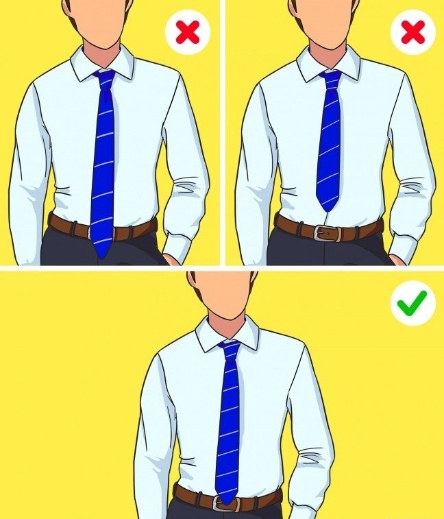 3. Конец галстука должен доходить до линии пояса брюк или слегка покрывать его
