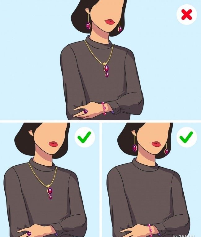 2. Не перебарщивайте с аксессуарами. Три или четыре аксессуара в том же стиле — это перебор