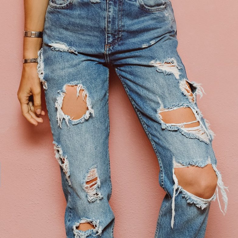 Очень рваные джинсы и футболка с детским принтом на зрелой даме выглядят глупо. Лучше заменить их обычными синими джинсами и белой футболкой — хорошее сочетание для всех возрастов.