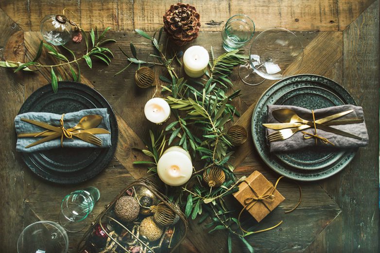 По-прежнему в моде экостиль, где преобладают натуральные материалы: дерево, лен, хлопок. Такую сервировку желательно дополнить чем-то растительным — веточками нобилиса или ели, палочками корицы или цветами.