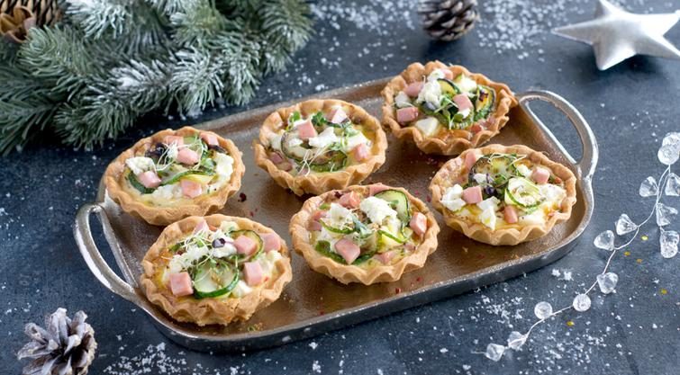 Корзиночки с вареной колбасой, кресс-салатом и кабачками