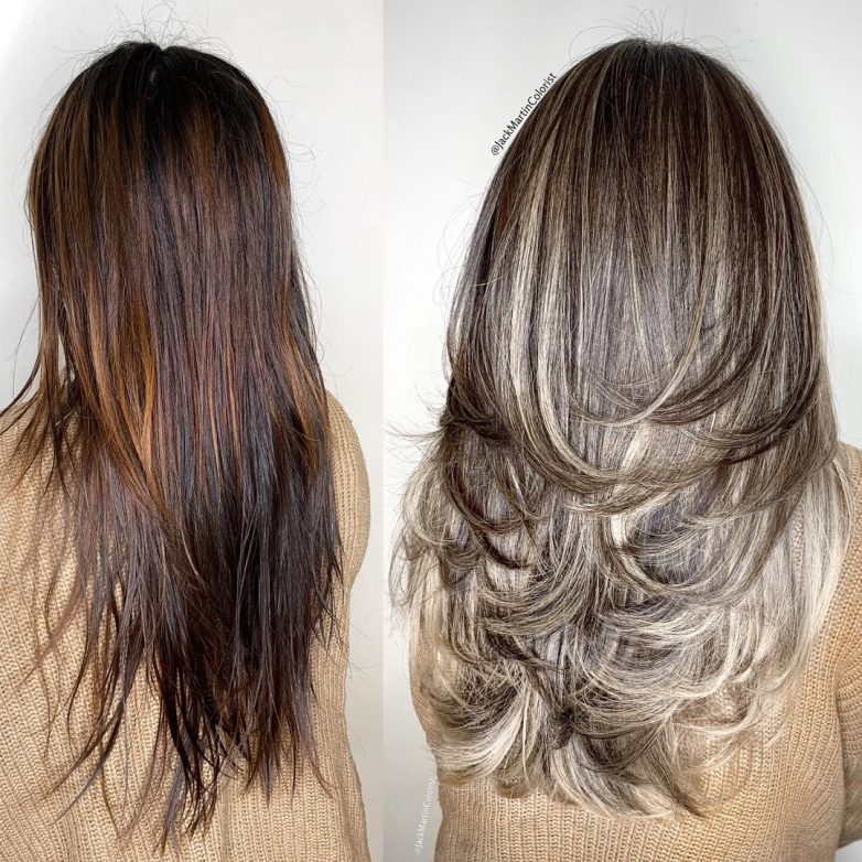 Многослойная стрижка прекрасно подойдёт женщинам после 50 лет. Стрижка подчёркивает скулы, а также визуально корректирует черты лица. Благодаря этой стрижке ваш образ будет лёгким и воздушны.