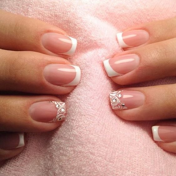 Белоснежный актуален как никогда! Комбинируйте классический и обратный френч, добавляйте узоры!