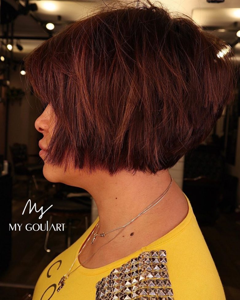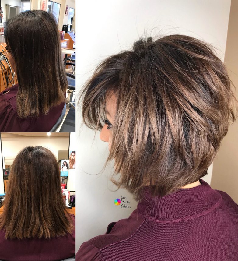 Элегантная форма стрижки боб в сочетании с градуировкой добавит свежести тонким и редким волосам. В том случае, когда густота волос не позволяет придать соответствующий объем при классическом варианте боба, сверху и на затылке делают укороченные пряди.