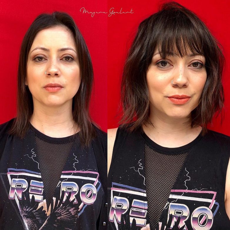 Очень важно индивидуально подобрать тот тип челки, который выделит достоинства овала лица, при этом скрыв его недостатки. Каскад часто используется для корректировки формы лица и сокрытия морщинок вокруг глаз.
