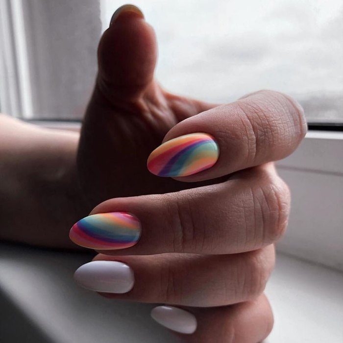 Милые «мультяшные» наклейки или животные принты — не бойтесь экспериментировать с броскими сочетаниями и задействовать все цвета радуги (в одном дизайне). Смотрите, как это можно осуществить.