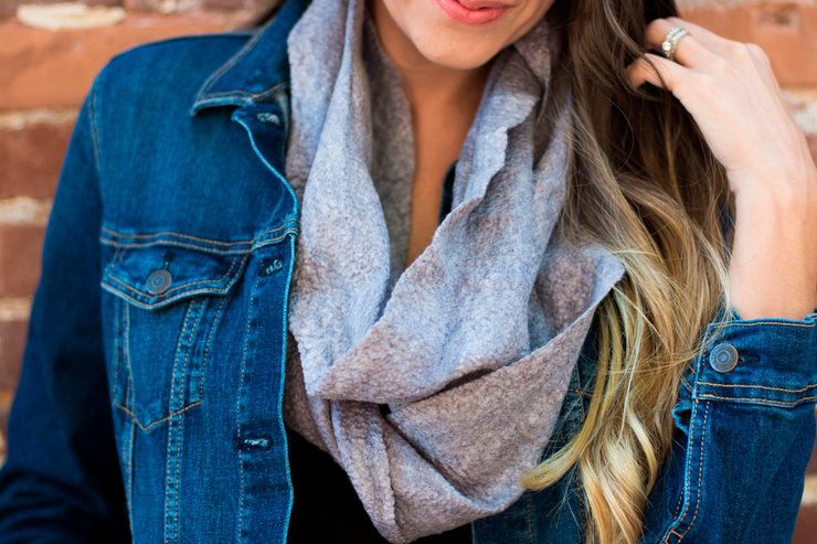 Если вам вдруг захотелось надеть снуд, но он совершенно не подходит к вашему образу, просто возьмите и сделайте его из обычного длинного шарфа. Приложите середину изделия к шее, обернув концы. Если модель длинная, повторите эти действия два-три раза. Теперь аккуратно спрячьте концы изделия, подвернув их под верхние слои.