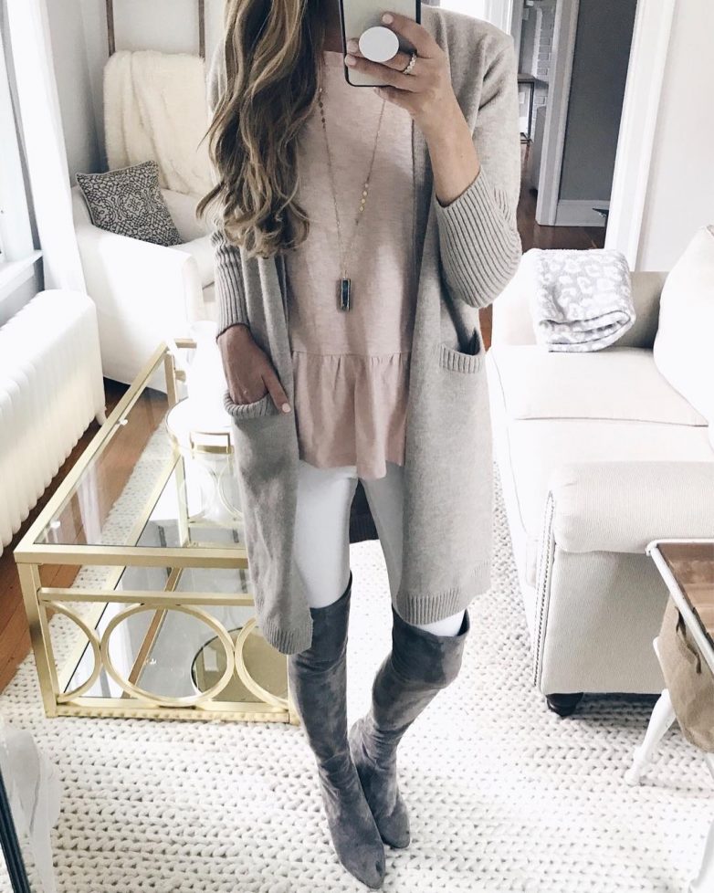 Сочетание серого кардигана и других оттенков